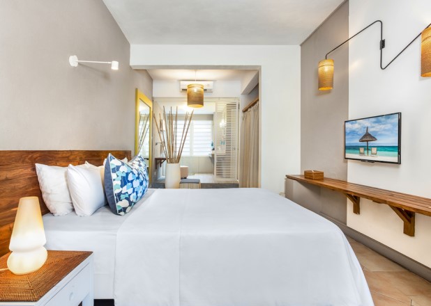 Bright, airy, and just a short stroll from the beach, the Standard Room is the perfect hideaway for couples or a small family. Step out onto your terrace or balcony and find yourself greeted by the gentle rustle of palm trees and views of the lush tropical gardens. Inside, the style is fresh, with crisp white linens, warm wood accents, and splashes of colour that give it a sunny, beach-house feel.