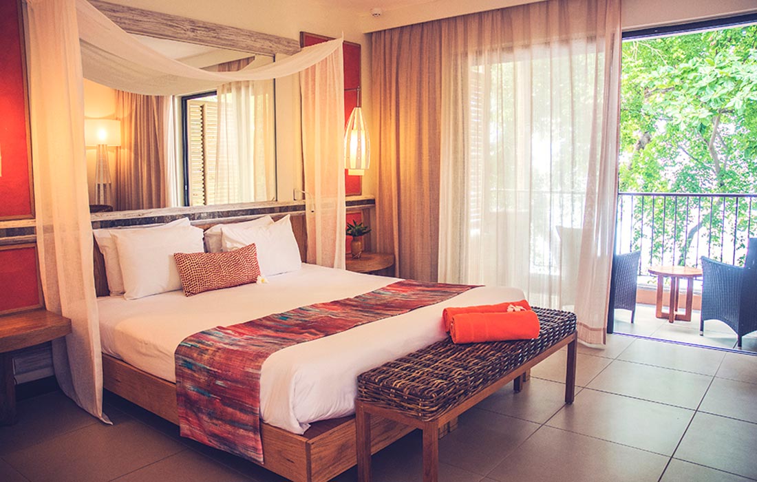 There are 30 Deluxe Garden rooms, 12 Deluxe Seaside rooms and 8 Deluxe Beachfront rooms styled in a fusion of African heritage and Mauritian charm with: